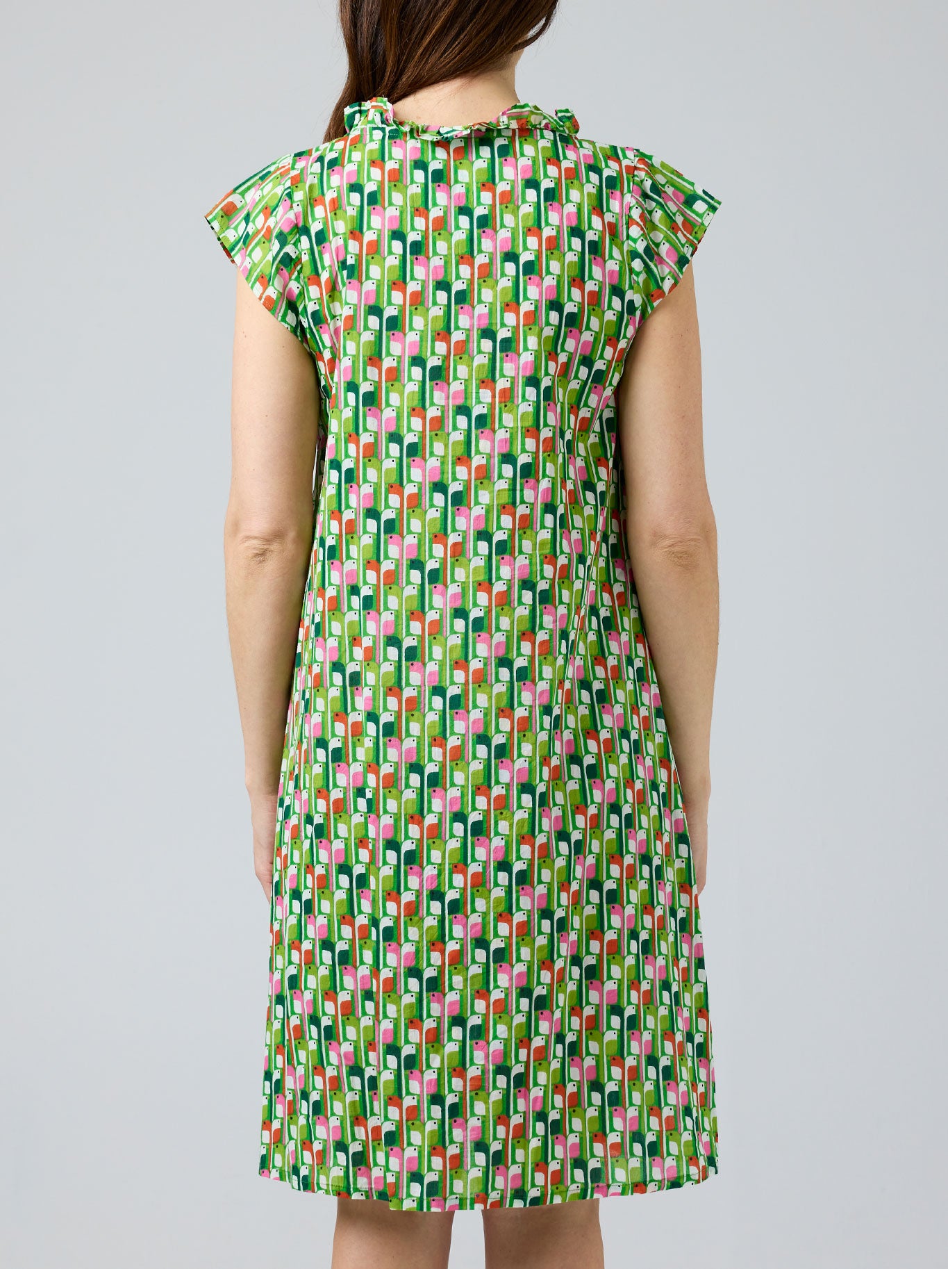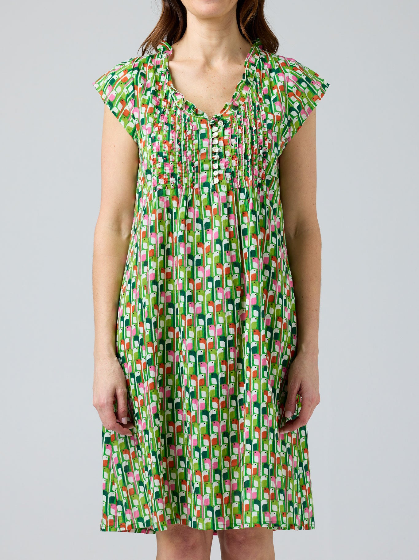You will simply adore the Darling Dress from Cake! With capped sleeves, a ruffled V neckline, shell buttons and embroidered micro-pleat detailing through the bust, this beautiful lightweight dress is designed for a fit and flare shape through the bodice with an easy knee length silhouette. Available in stunning new season cotton prints.