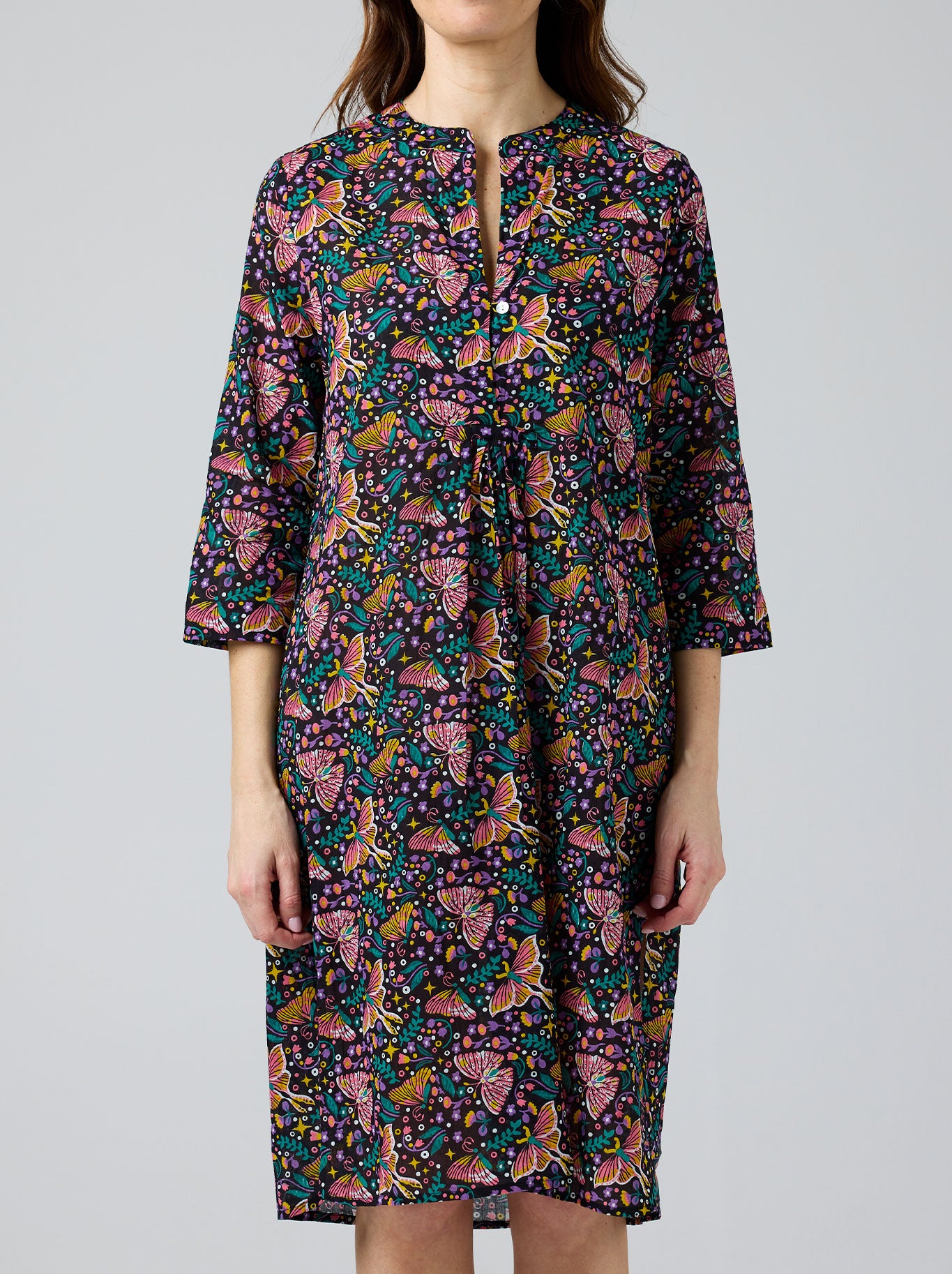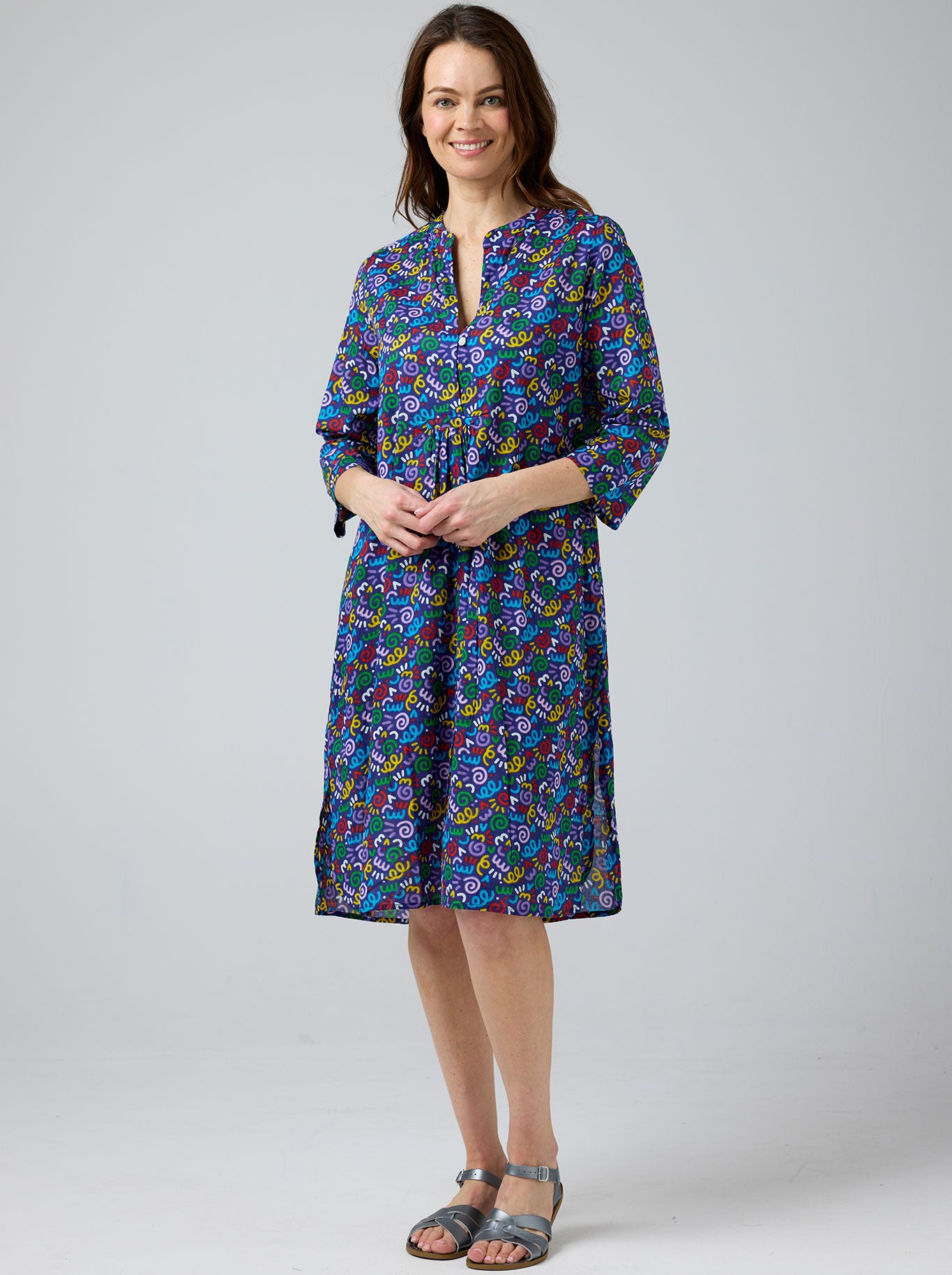 The Seasonal Dress from Cake includes several noteworthy design features; a mandarin collar for a relaxed neckline with one button closure at the chest, minor gathering at the centre front high waist highlighted by the placket for reinforcement and 3/4 length sleeves for breathability and comfort in the warmer weather!
