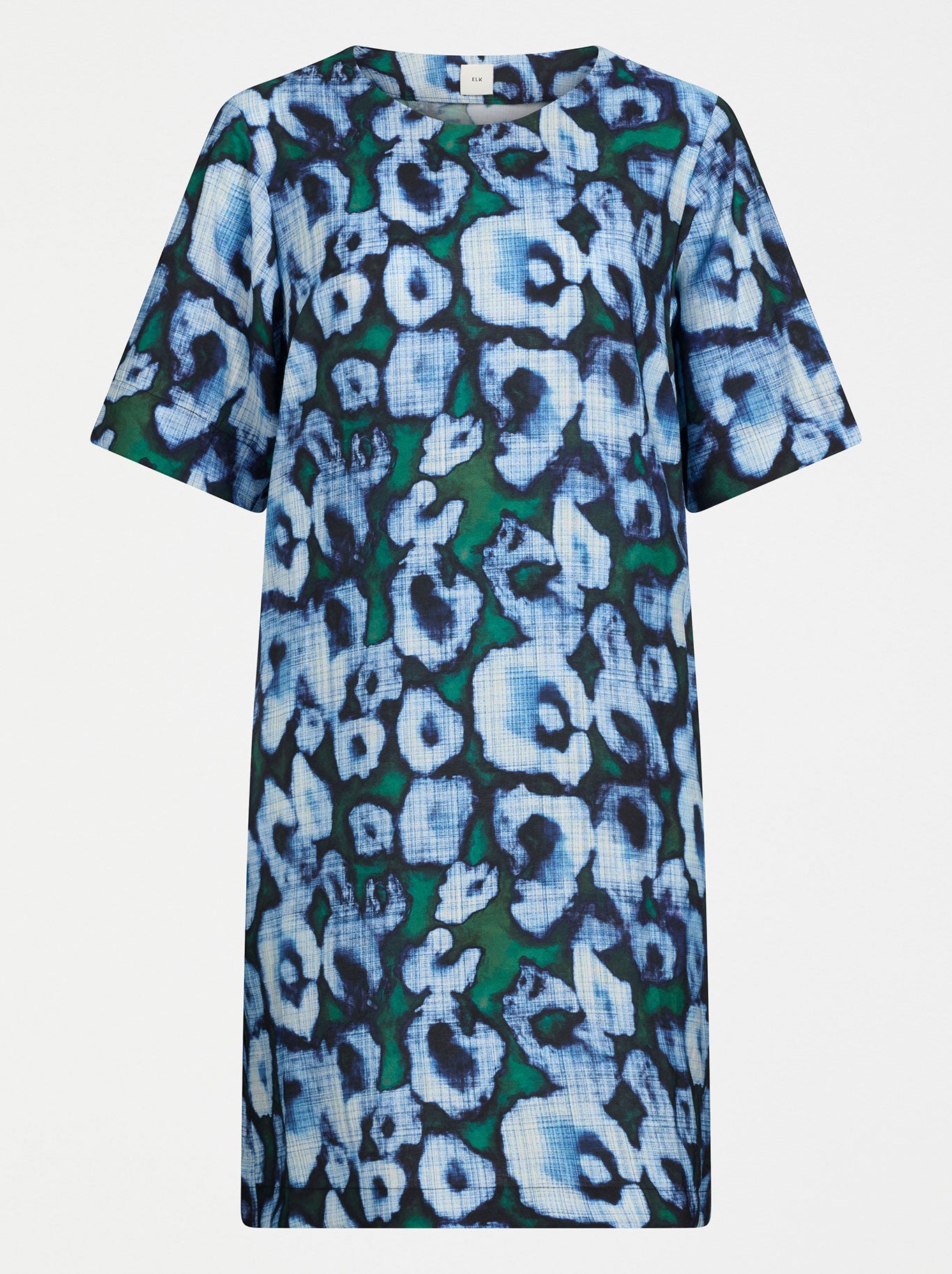 The Tili Dress by Elk the Label is a knee-length tee shift style showcasing the fresh and bold seasonal Ellora Print. Crafted from a silky LIVA REVIVA™ viscose blend made from recycled materials, this dress has simple short sleeves and a regular fit through the bust, flowing into a slight A-line silhouette. Finished with side-seam pockets and a subtle button detail at the neckline adding a thoughtful finish touch. The perfect warm-weather dress for effortless day-to-evening dressing
