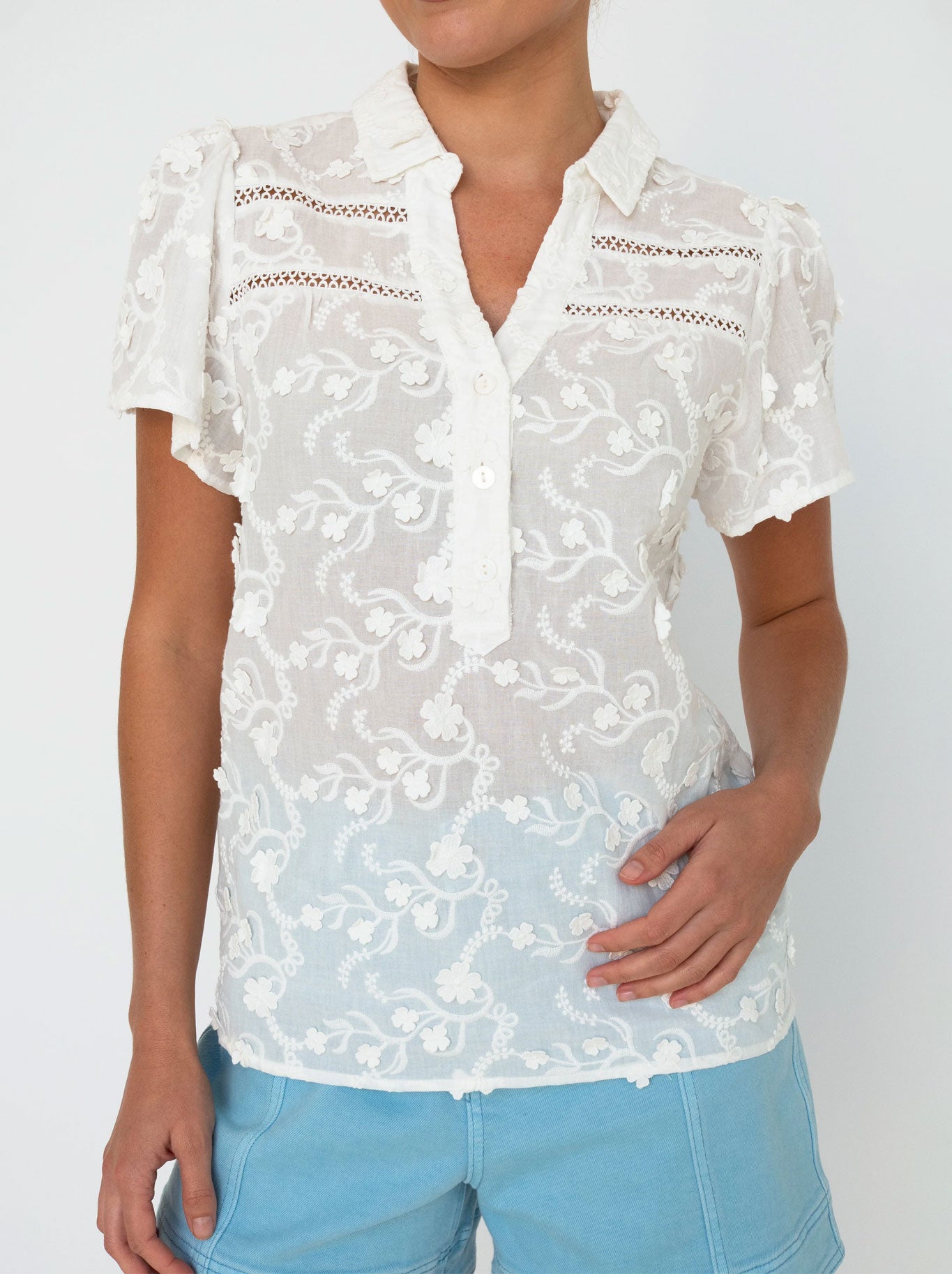 It's all in the details with the Valentina Shirt by Kirena. Featuring floral embroidery with an added touch of broderie anglaise detail, this 100% cotton shirt delivers elegance and ease-of-wear in equal measure. Worn over a pair of jeans or paired with a casual short this is one shirt that enhances every outfit.