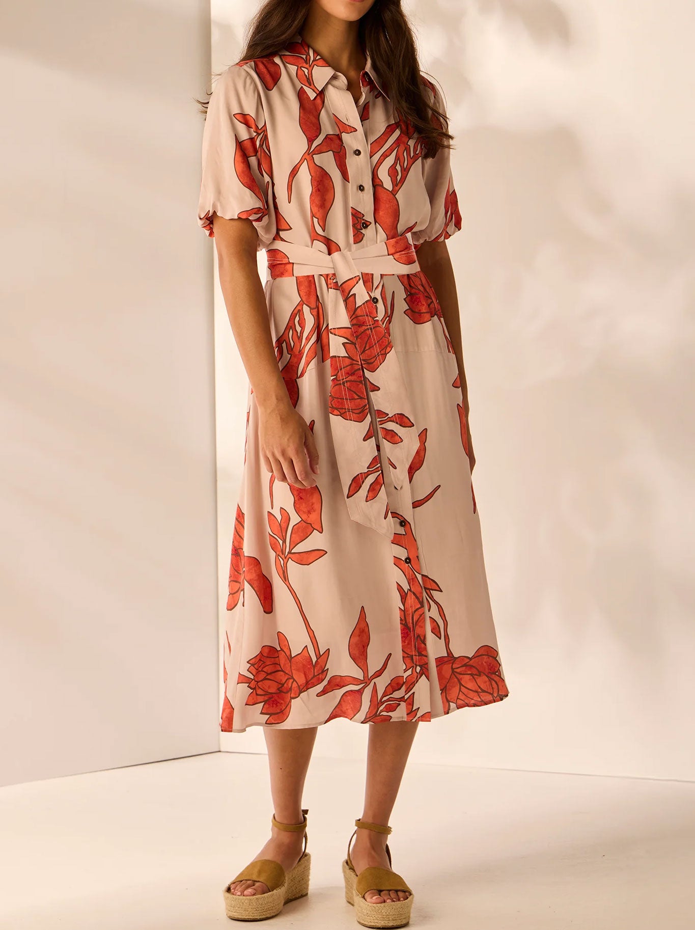 The Chino Dress by Lania the Label is a sophisticated design that showcases a graceful and intricate floral print. its key elements are a front buttoned dress adorned with wooden buttons, seam across the hip and a tie belt to cinch in the silhouette. These lovely features enhance the beauty of this stunning silhouette and make it perfect for summer.