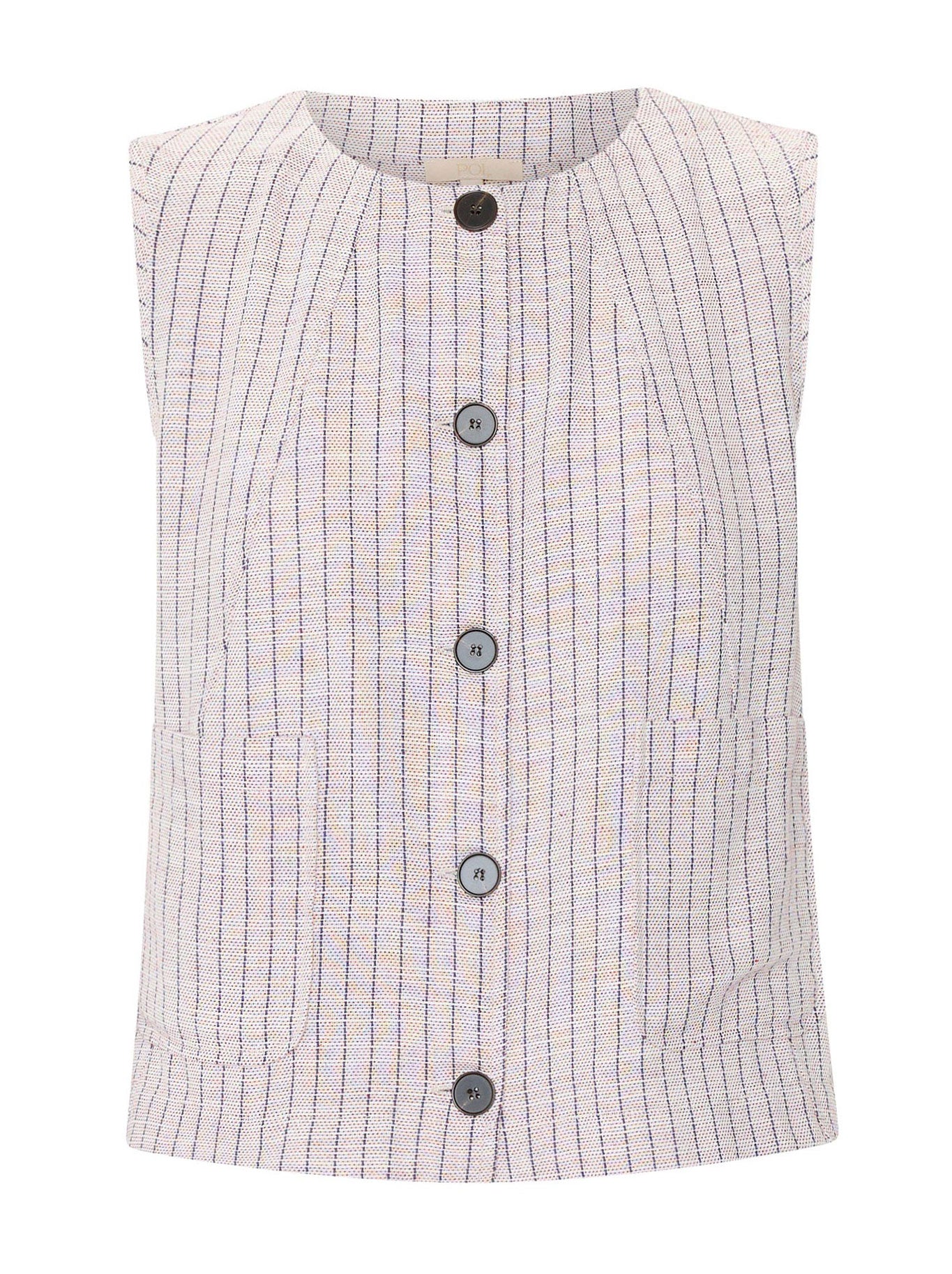 Made from a textured linen cotton blend with a contrast stripe, the Maya Vest from Melbourne based brand Pol Clothing is Summer suiting at its best. Featuring a round neckline, horn button button closure, a boxy fit and a drawcord detail at the waist, this vest is versatile enough to transition seamlessly from office to weekend! Pair with the matching Maya Tailored Shorts for a polished finish.