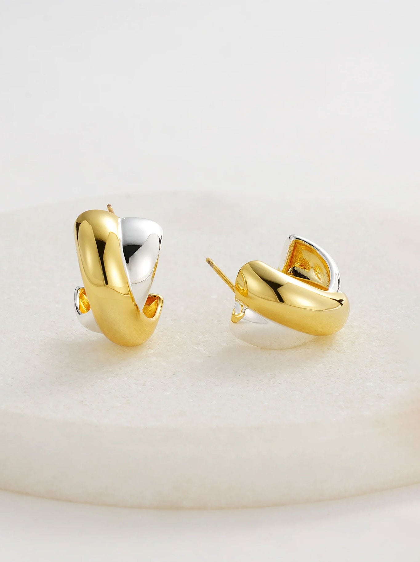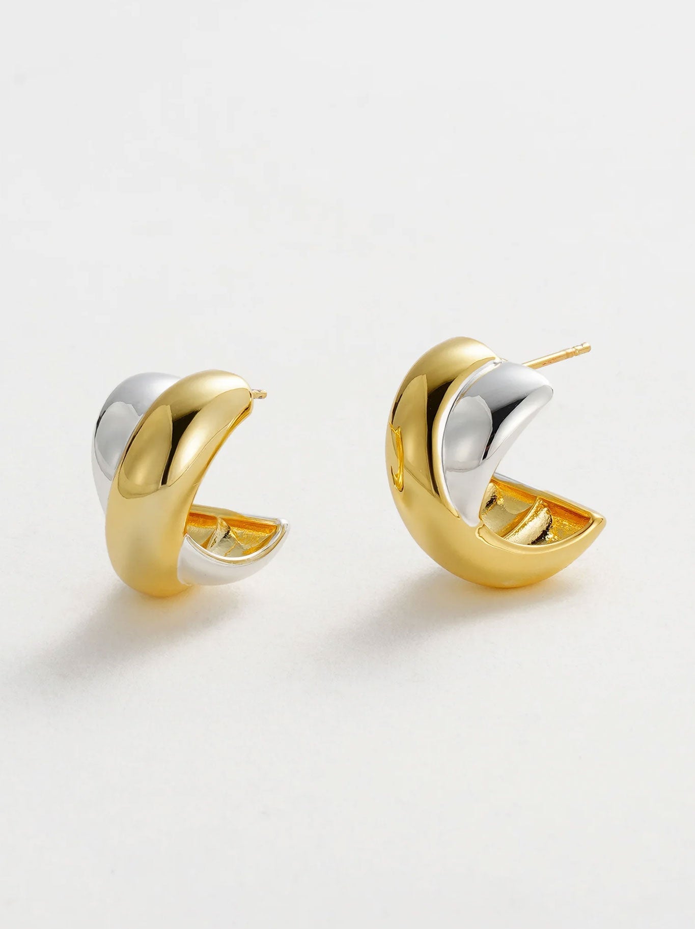 The Zafino Freya Hoop blends gold and silver tones in a bold, sculptural design that feels both timeless and modern. Its curved silhouette makes a statement while remaining versatile enough for everyday wear. Layer alongside simple studs for a perfectly balanced mixed-metal look.