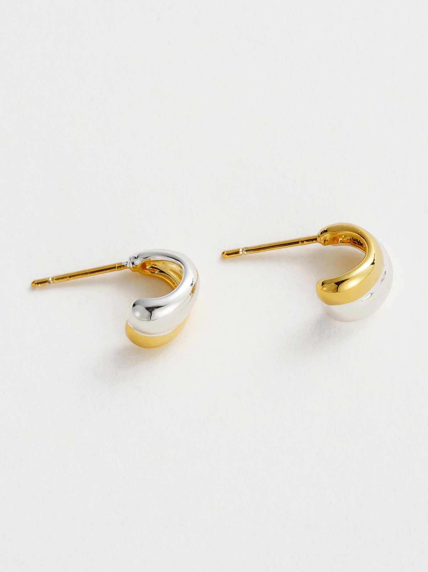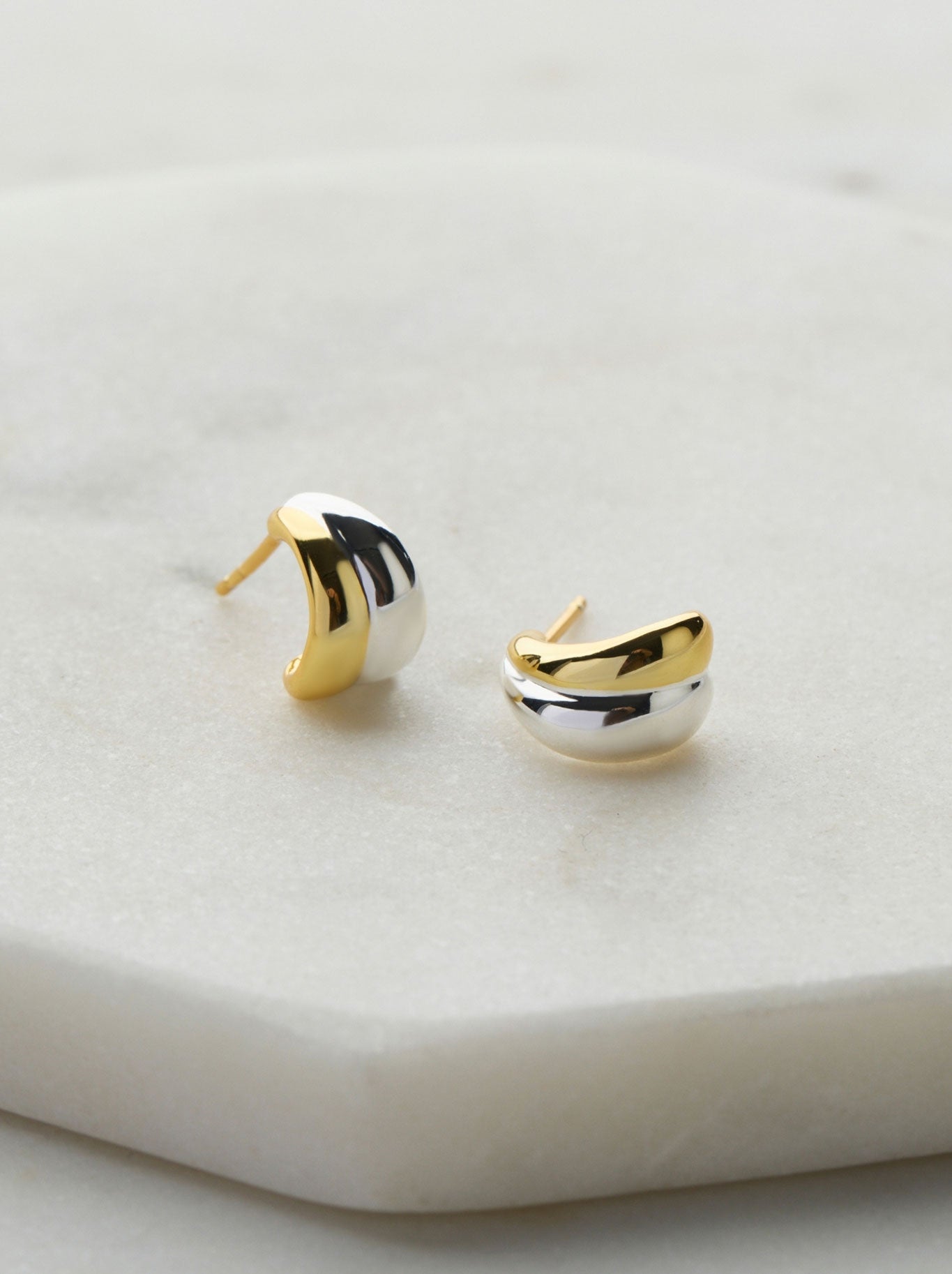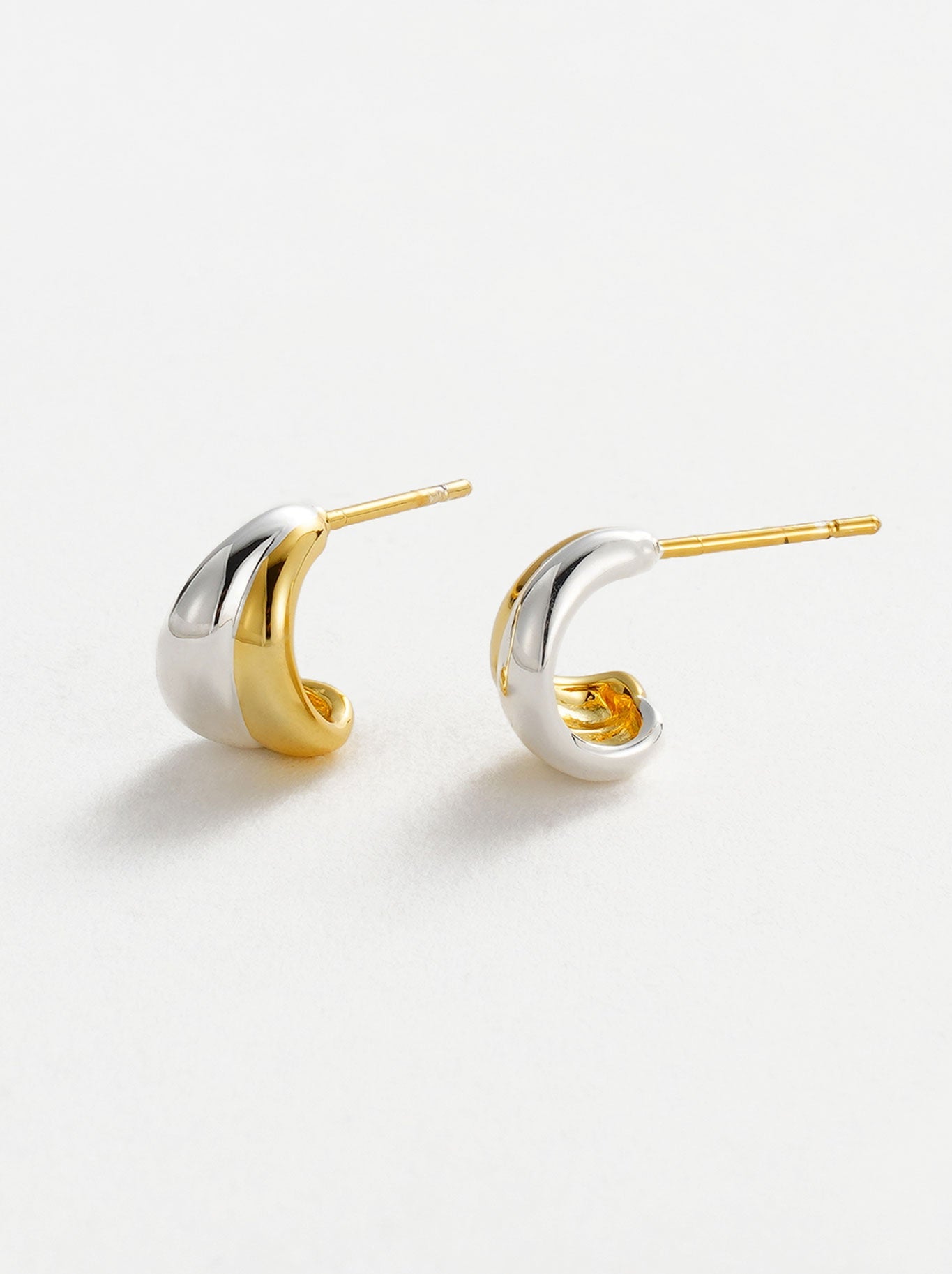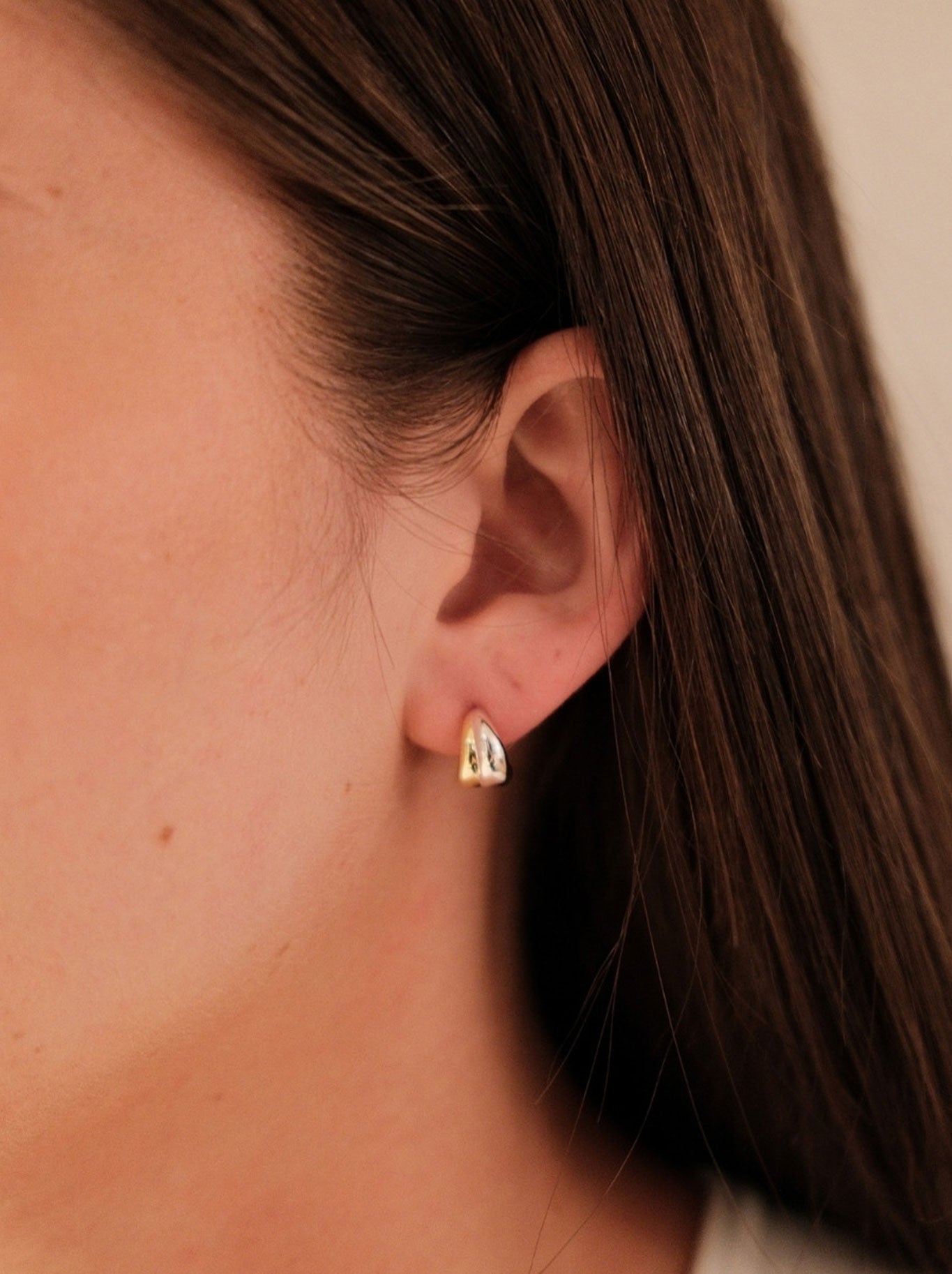 The Zafino Mia Huggie is a sleek mixed-metal design that blends polished gold and silver tones in a sculptural silhouette. Compact and versatile, this modern huggie is perfect for everyday wear — adding subtle edge when worn solo or balancing beautifully in a stacked look.
