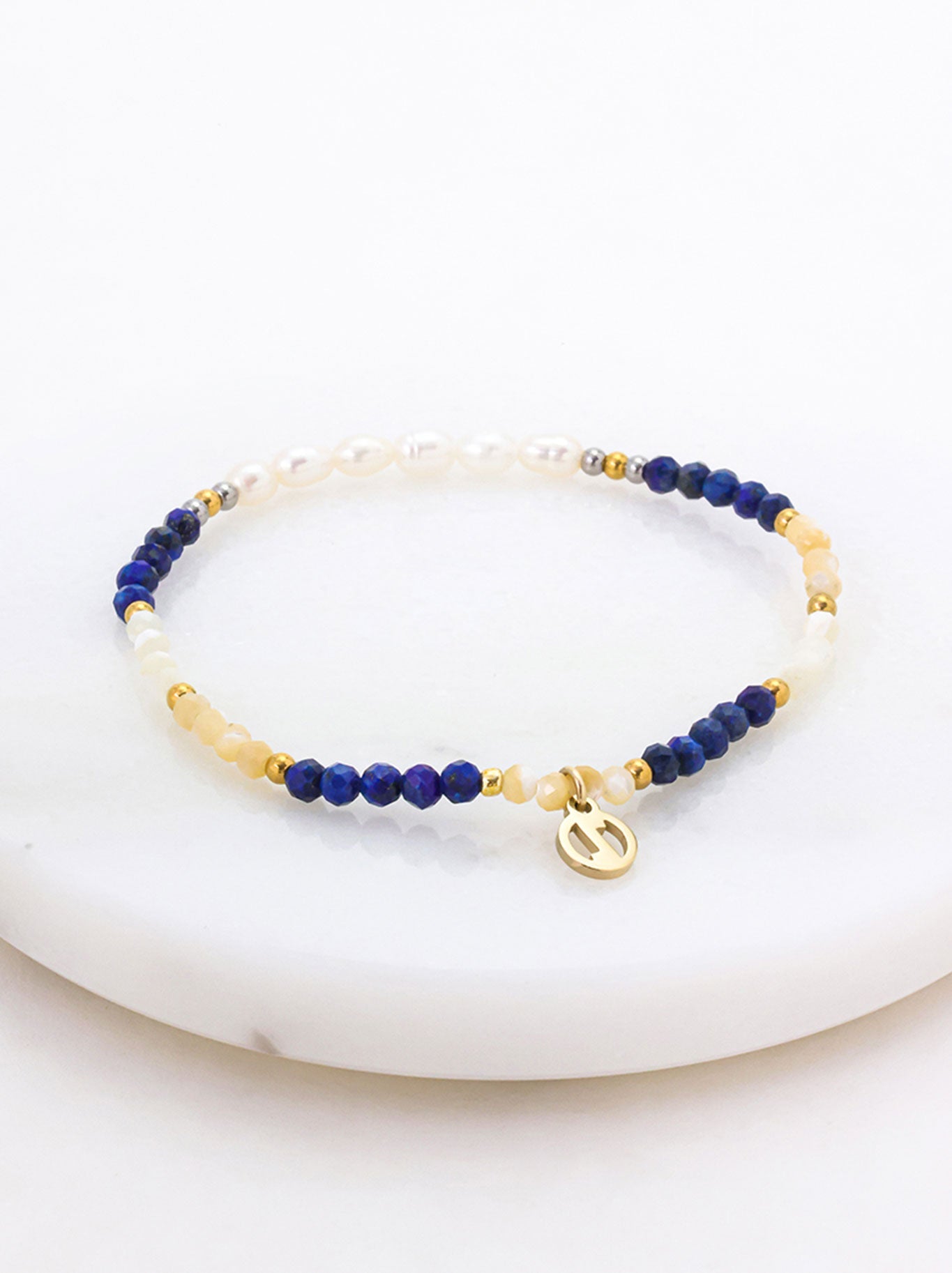 The Zafino Tiana Bracelet features unique shapes and stunning navy semi-precious stones, creating an elegant and charming accessory. Its modest size adds a delicate, feminine touch to any outfit, effortlessly enhancing both casual and formal looks. This bracelet is the perfect finishing piece to bring refined charm where one desires.